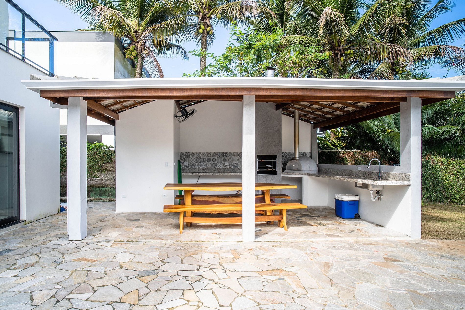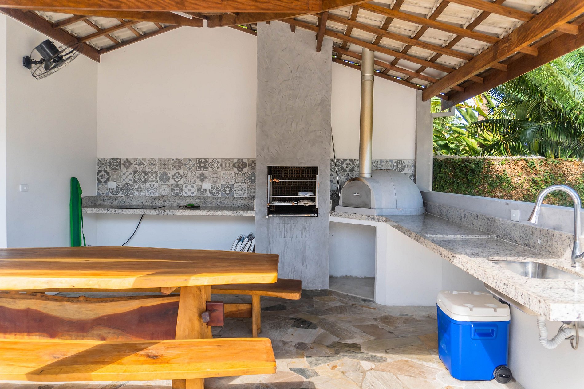 Área gourmet completa, com cooktop a gás, churrasqueira e forno de pizza para momentos incríveis ao ar livre.