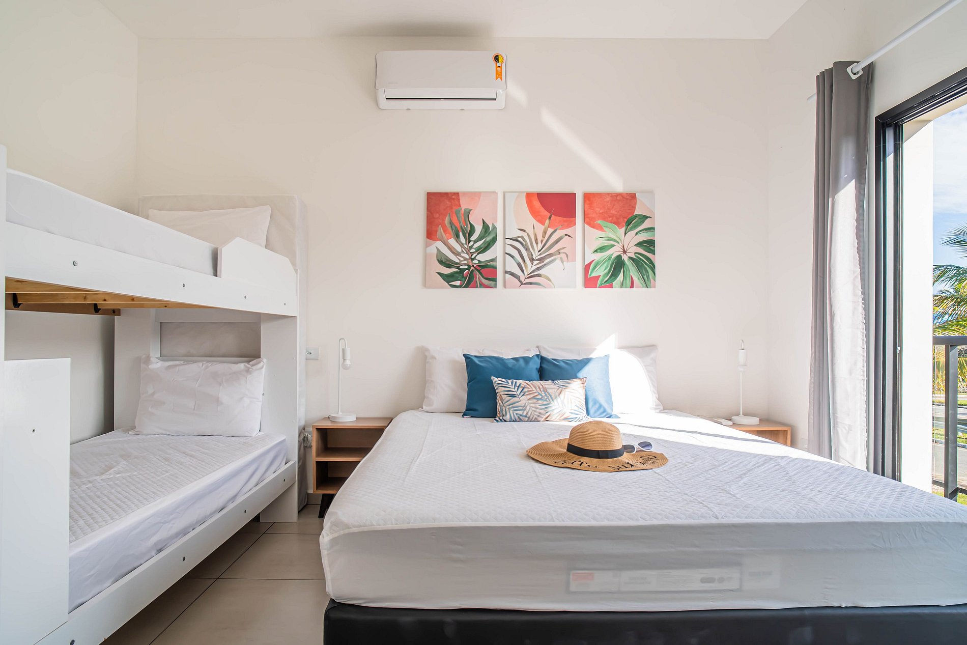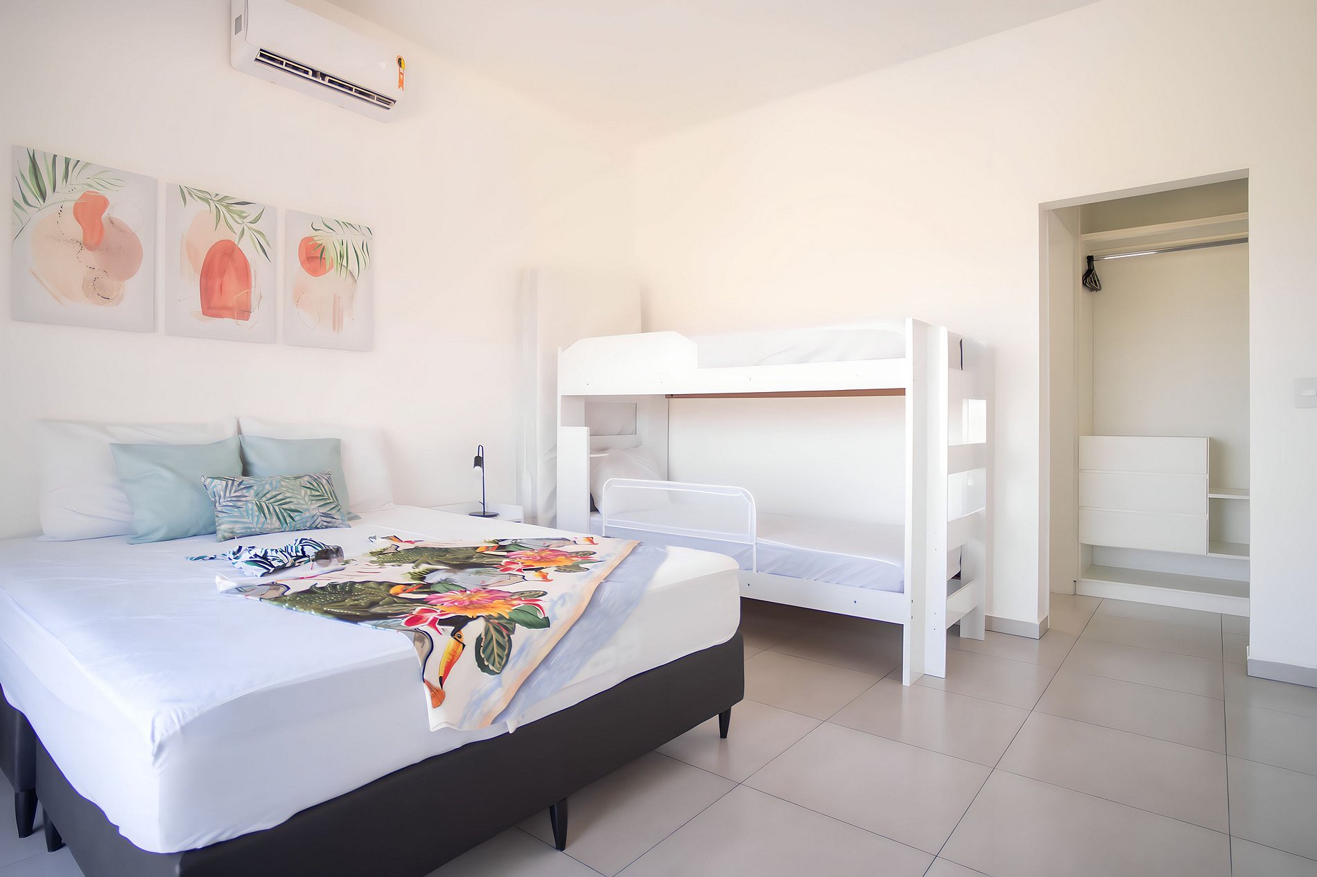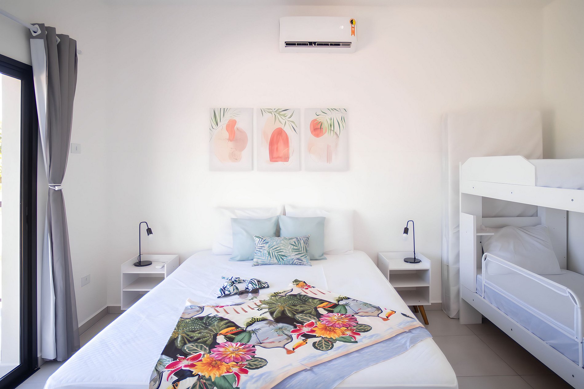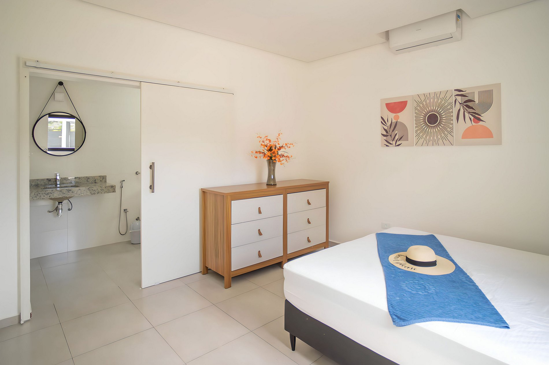 Cinco suítes climatizadas, incluindo uma acessível para PNE, garantindo conforto para todos.